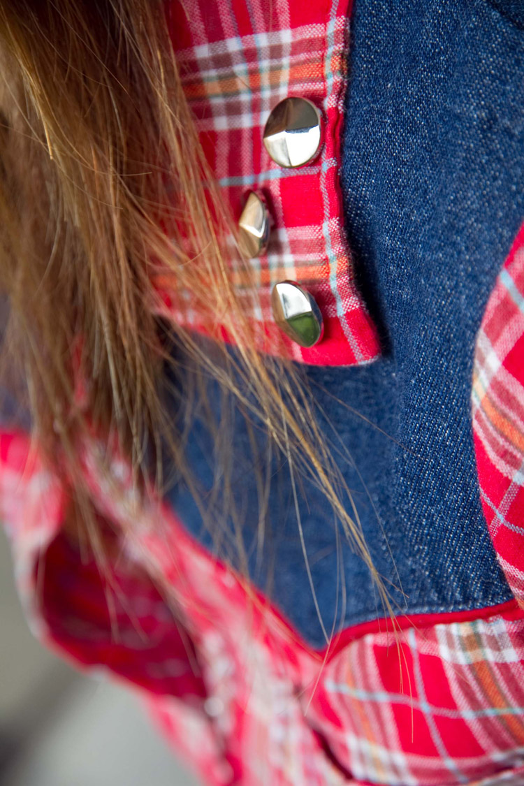 sheer shirt from Japan; plaid shirt from Fumiko Kawa redesign; pleated skirt from Japan;